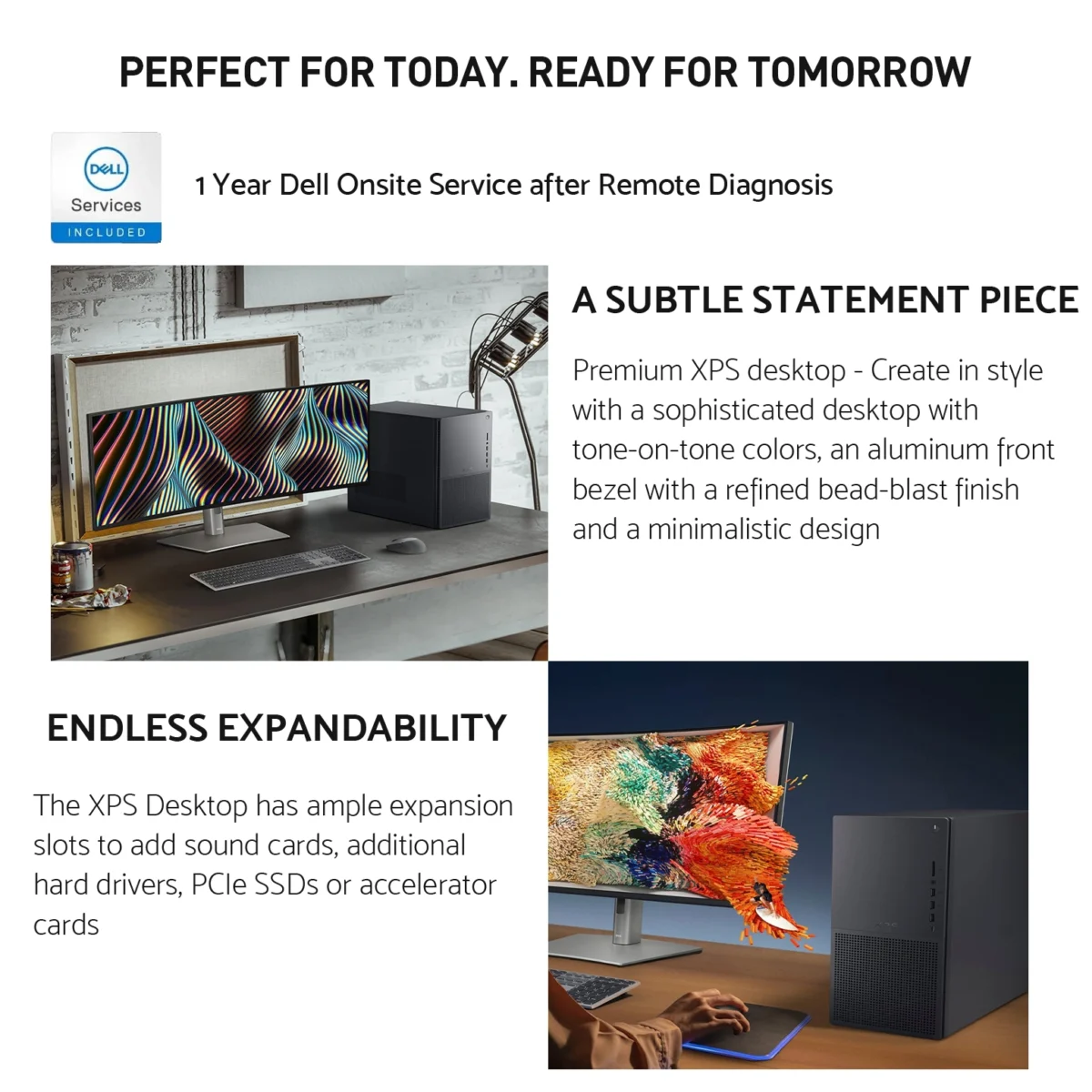 Let your creativity soar with the elegantly-designed XPS Desktop. Pack more power into your ideas with the latest processors and graphics, increased airflow, loads of expandability and multiple cooling for longer sustained performance. Behind the low-key looks of Dell’s latest XPS Desktop is a powerful, capable mid-tower PC for business, gaming, creating, and everything else.