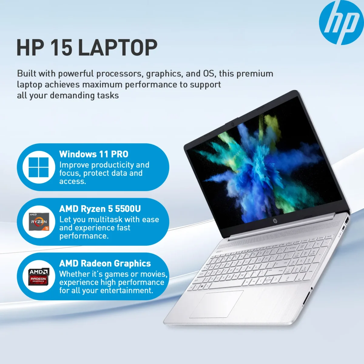 Power through any assignment, stream your favorite content, and compute on the go with the HP 15.6 inch Laptop. With long lasting battery life and slim bezel design, the premium HP notebook computer is built for speed, multitasking and collaboration, featuring powerful computing and connectivity capabilities. With the robust AMD Ryzen 5 processor, fast RAM and reliable storage, the HP Laptop 15 delivers exceptional performance for intensive applications and everyday tasks. Super thin and light for easy portability