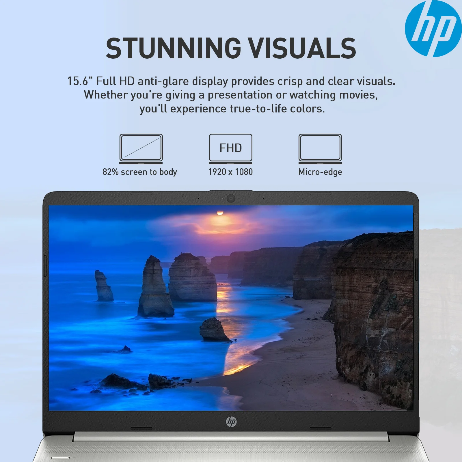 15.6″ Full HD(1920×1080) micro-edge, anti-glare display – sharp images and vibrant colors