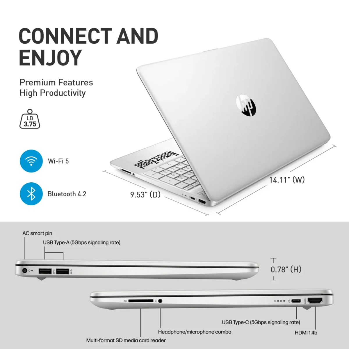 ✅【STAY SECURE, BE PRODUCTIVE】With up to 8 hrs long battery life and Fast Charge for all day productivity, the AI-powered, ultra-secure and responsive 15.6 HP laptop Windows 11 Pro tackles demanding tasks 42% faster on average. The HP windows laptop computer is the place to think, express, and create in a natural way. The high performance windows 11 pro laptop features SuperSpeed USB-C(data transfer)+2x USB-A, SD Card Reader, HDMI, Wi-Fi 5+Bluetooth 4.2(Gigabit speed). 1Y Warranty.